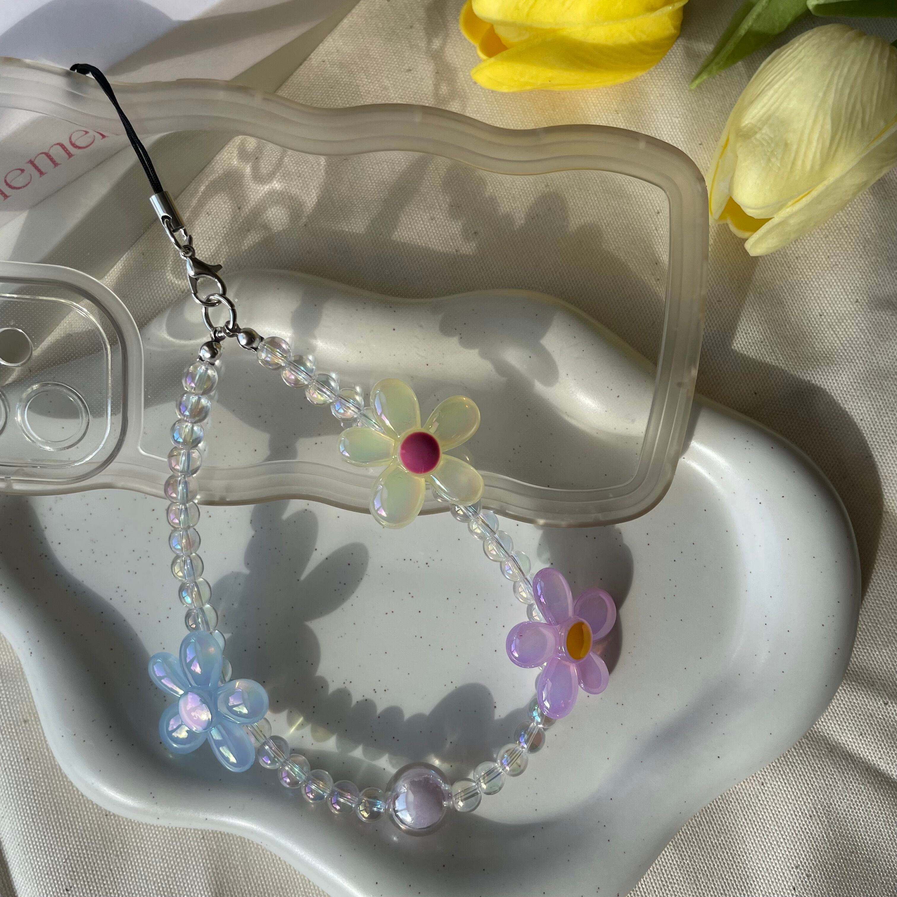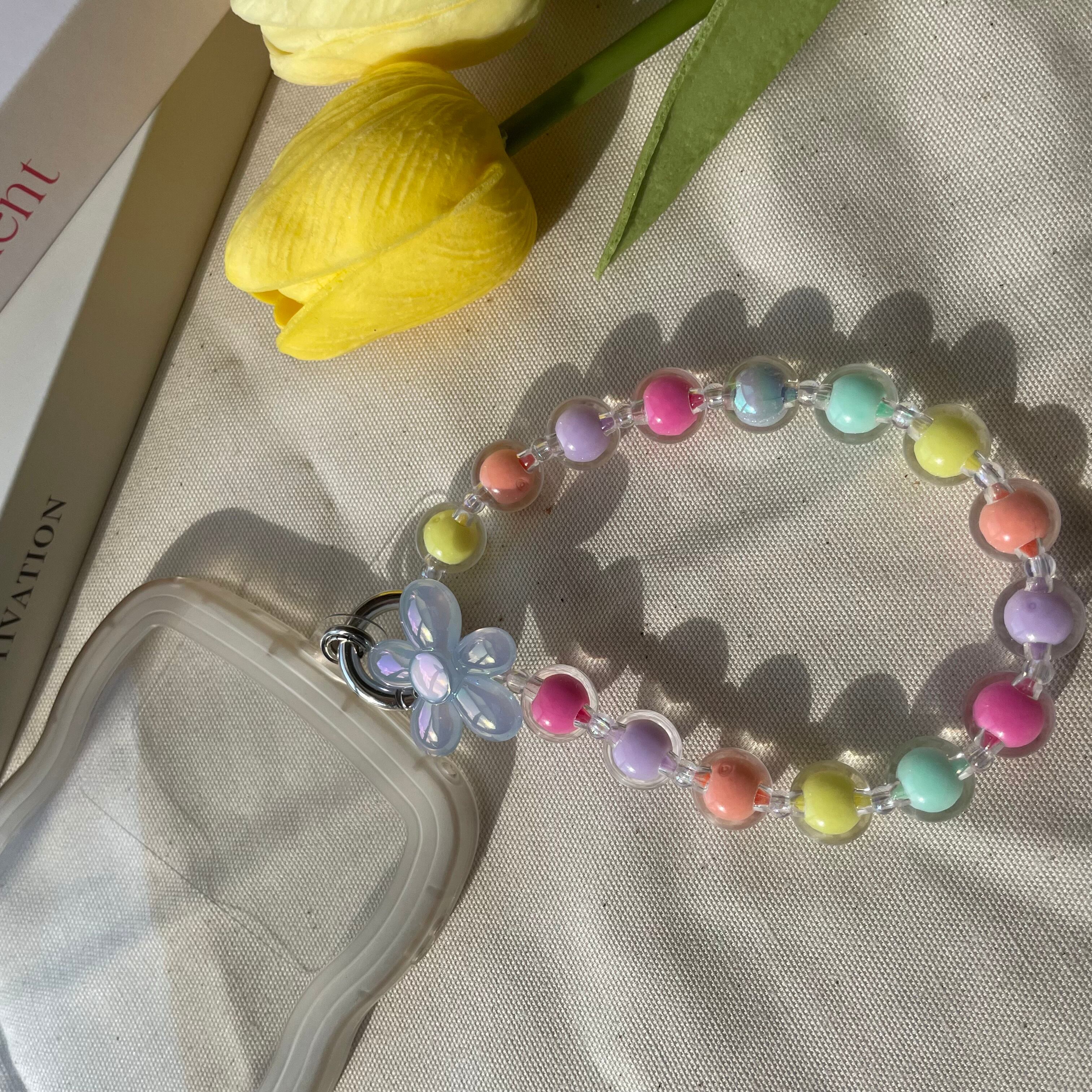 可愛いビーズを繋げたストラップで、落下防止にも役立ちます!